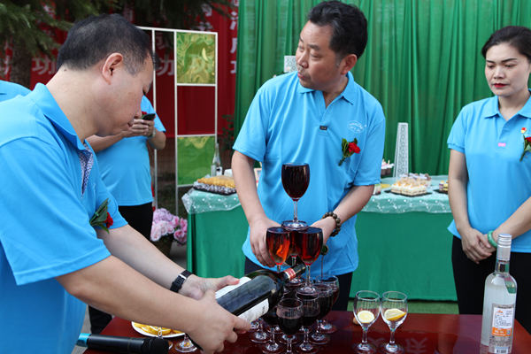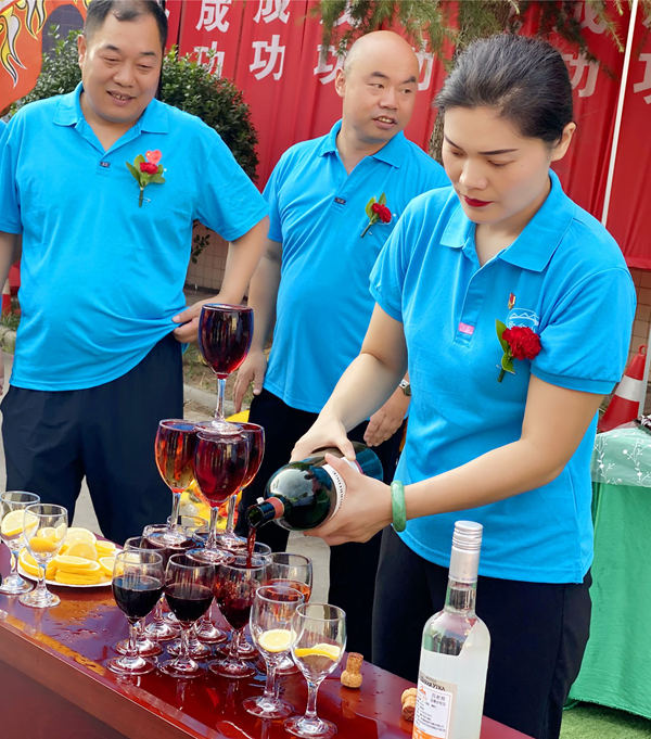 為了表示對(duì)家人們工作的肯定,董事長(zhǎng)親自向大家敬酒