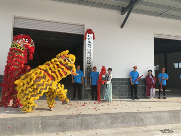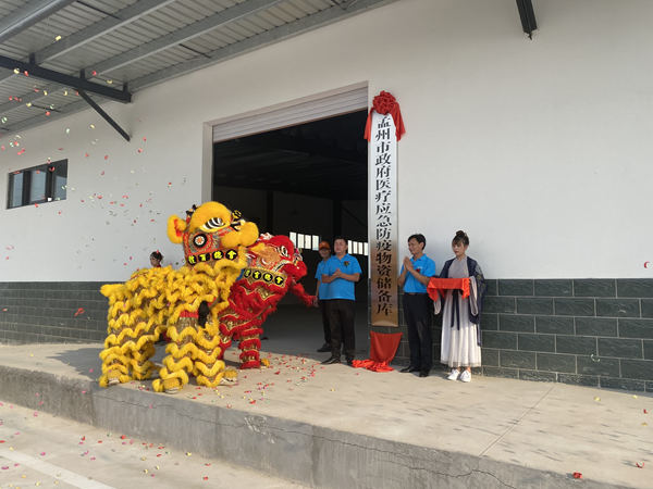 云臺山醫(yī)藥公司副總經理戴雪卿、云臺山醫(yī)藥公司總經理助理葛云增為孟州市政府醫(yī)療應急防疫物資儲備庫揭牌。