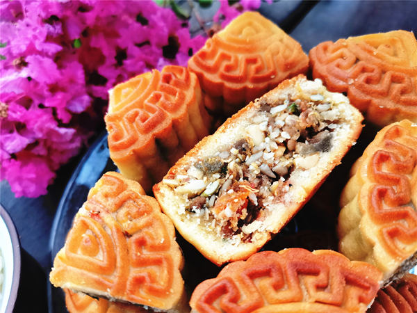 “月明菊香”月餅所含的蜂蜜和菊花,有護(hù)膚美容、促進(jìn)消化、改善睡眠、抗疲勞、抗菌消炎、促進(jìn)組織再生、潤肺祛痰止咳、祛濕利尿、涼血止血、寧心安神、清熱解毒、保肝、明目等功效故選用上等蜂蜜和懷菊花烘焙而成。月餅色澤紅潤、晶瑩剔透,口感細(xì)膩;六代傳承、配料正宗、傳統(tǒng)工藝、色香味俱全、入口猶如母親的雙手輕拂你的額頭,這正應(yīng)了“玉食皆入口,此餅?zāi)霜?dú)絕”這句話。